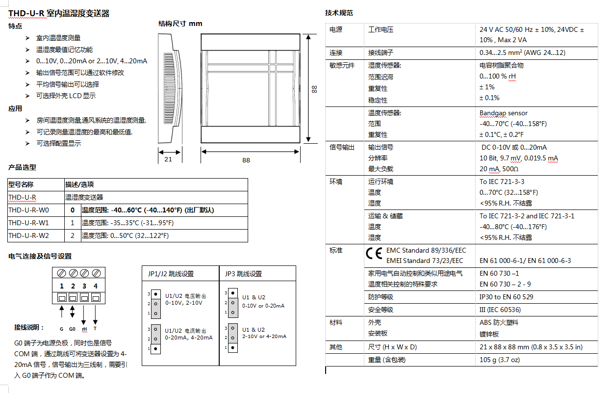 THD-U-R室內溫濕度變送器