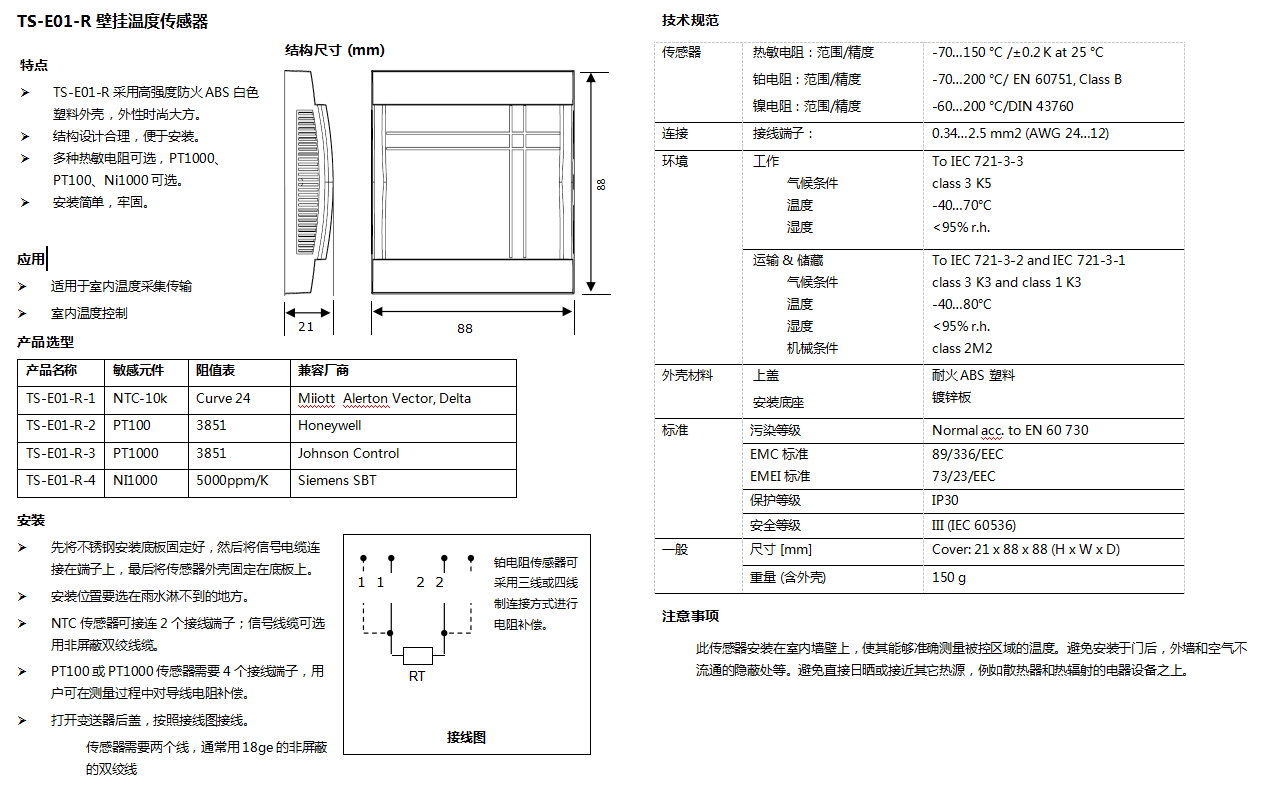 TS-E01-R 壁掛溫度傳感器