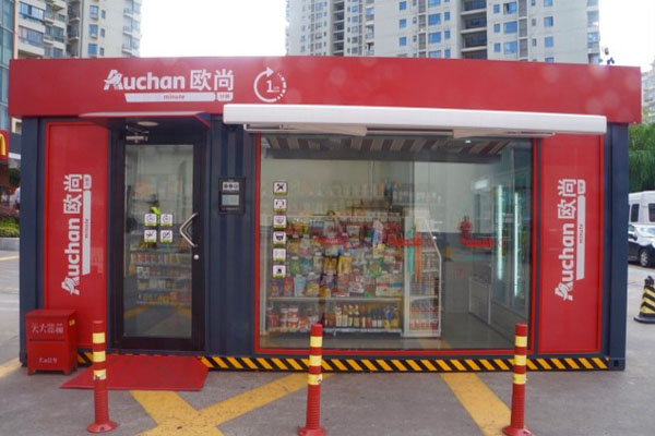 一聽說北京落地好幾家無人超市,作為一個永遠對新生事物持有好奇心的我,小編按耐不住的決定也去體驗一下這種新型的24小時營業無人值守的便利店。隨后一個由長6米,寬3米的標準集裝箱改造而成的紅色盒子開始進入視線,盒子的頂部寫著“歐尚1分鐘”字樣,格外吸引眼球,門口的一側安裝有自動感應遮雨棚,透過玻璃往里看去,盒子內部各種零食、飲料、生活用品等一應俱全。